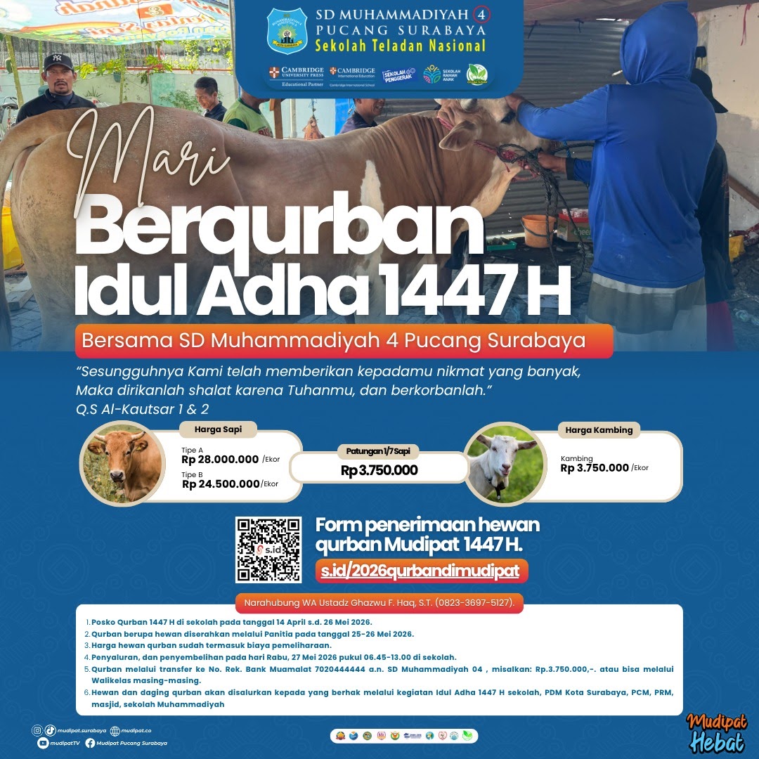 MUDIPAT.CO-SD Muhammadiyah 4 (Mudipat) Surabaya kembali menggaung di panggung kancah internasional. Siswa-siswi Mudipat berhasil menorehkan tinta emas dalam ajang bergengsi dunia RoboCup Singapore 2026,...