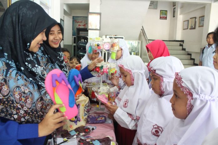 “Gimana ini cara bikin bunga secantik ini?” tanya Shafanda Shaquila, siswa pindahan dari Samarinda, pada salah satu guru penanggungjawab keputrian. “Yang buat ini murid-murid?” tanyanya lagi.