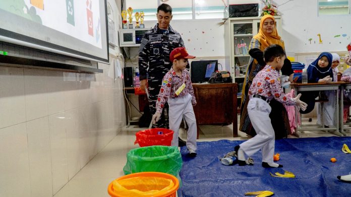 Siswa juga diajak praktik memilah sampah. Antara sampah anorganik dan organik. Sampah tersebut nantinya dapat didaur ulang. Ia juga menjelaskan alur menabung ke bank sampah. “Hasilnya bisa dibuat uang jajan lo,” ucapnya. “Wah mauu,” teriak siswa.