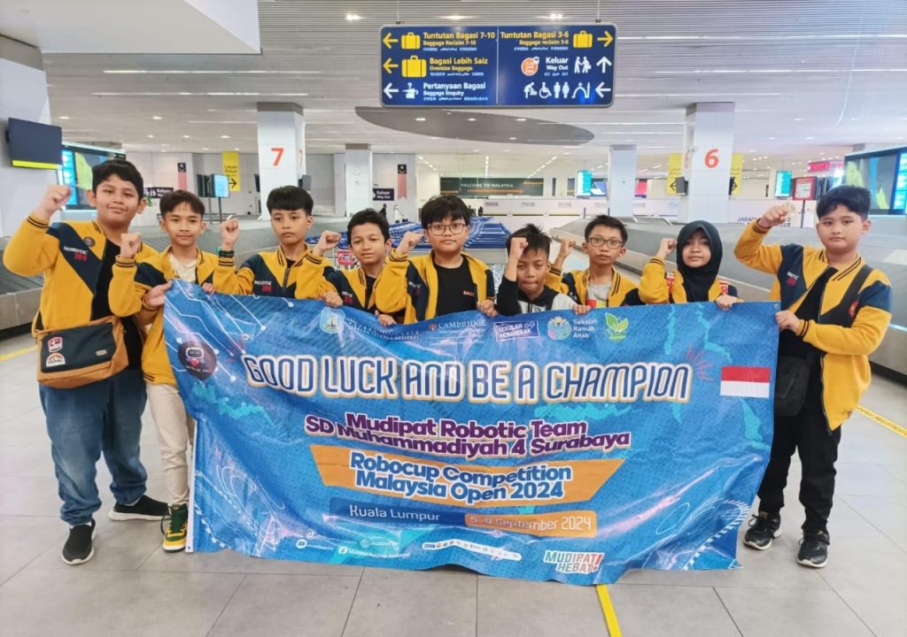 MUDIPAT.CO – Ekskul Robotika di SD Muhammadiyah 4 Surabaya kembali merengkuh kepercayaan masyarakat. Bagaimana tidak, tim robotika Mudipat terpilih menjadi perwakilan bidang robotika dari Indonesia yang akan berkompetisi di Negeri Jiran, Malaysia pada hari Kamis hingga Senin (5-9/9/2024).
