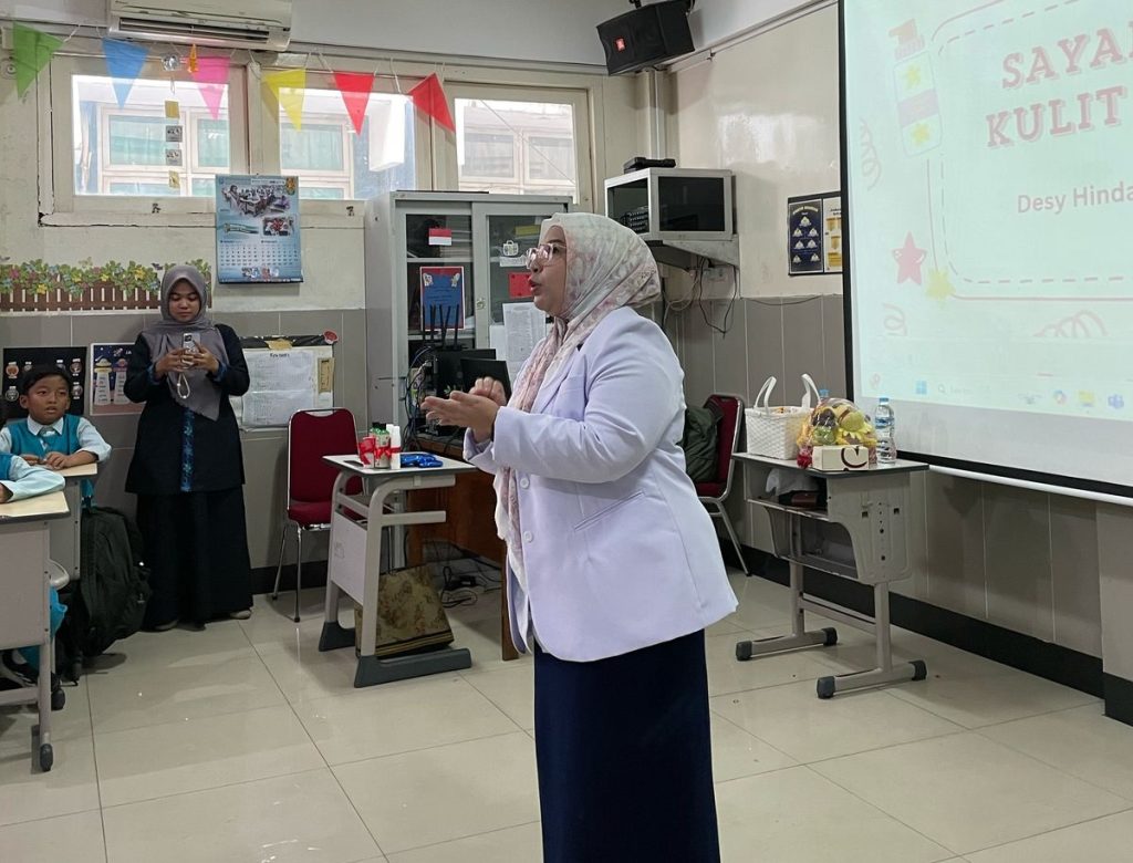 MUDIPAT.CO – Kamis, 13 februari 2025 kelas 3C SD Muhammadiyah 4 (Mudipat) kedatangan guest teacher, dokter Desy Hinda Pramita salah satu wali murid kelas 3C. Materi yang disampaikan yakni tentang “sayangi kulit kita” bertujuan agar siswa siswi bisa mengenal bagaimana cara melindungi dan merawat kulit dengan baik dan benar.