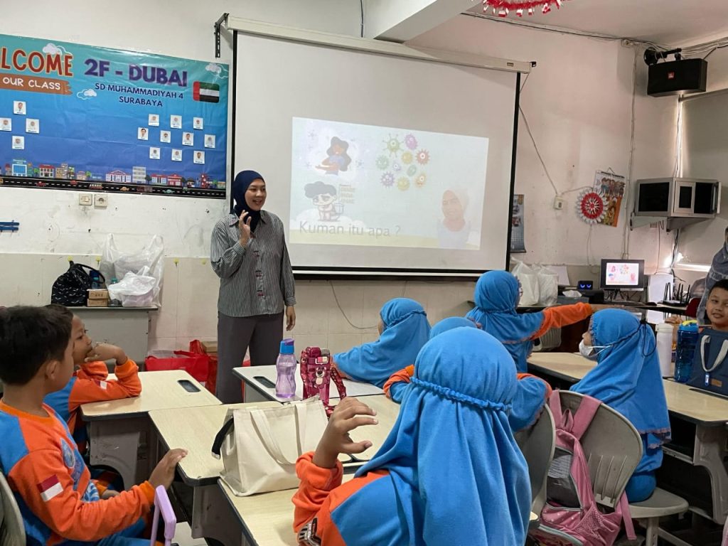 MUDIPAT.CO – Jumat, 14 Februari 2025 kelas 2F SD Muhammadiyah 4 (Mudipat) kedatangan guest teacher salah satu orang tua siswa, Ing Yeni Anggaraeni G, MM bunda dari Ayana (5F) dan Saka (2F), materi yang disampaikan yakni “menjaga kebersihan” kegiatan ini bertujuan agar siswa siswi bisa mengetahui bagaimana cara menjaga kebersihan sehari-hari.