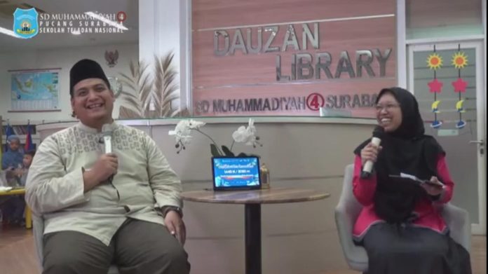 MUDIPAT.CO – Semarak Ramadan di SD Muhammadiyah 4 Pucang Surabaya (Mudipat) semakin terasa dengan digelarnya kajian live streaming bertema “Puasa Itu Memaafkan” pada tanggal 17 Maret 2025. Acara yang disiarkan langsung melalui platform YouTube ini menghadirkan narasumber inspiratif, Ust. Fiemas Maulana Al Jufri, S.Psi., M.Pd., guru Mudipat dan juga aktivis Muhammadiyah sebagai Ketua bidang Tablig Pimpinan Wilayah Muhammadiyah Jawa Timur. Acara dimeriahkan juga oleh penampilan spesial dari band cilik Mudipat, The Little Warrior dan D’fasco.