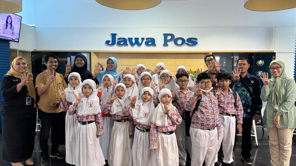 Setelah sesi pertama di EBS FM, kegiatan dilanjutkan menuju kantor Jawa Pos di Graha Pena. Di sana, siswa kembali disambut oleh Kak Juno, PD dari Jawa Pos TV. Selain mendapatkan wawasan tentang proses produksi berita televisi, siswa juga diajak berkeliling studio dan berlatih menjadi news anchor secara langsung. Pengalaman ini menjadi momen yang tak terlupakan bagi para siswa.
