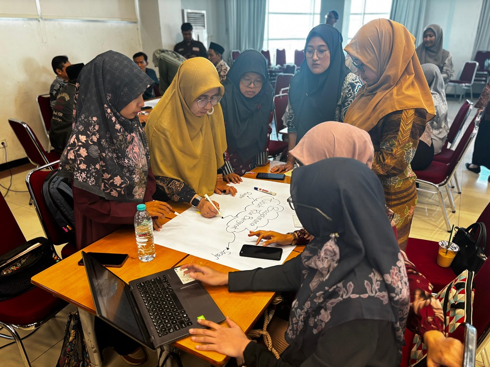 Tak berhenti sampai di situ, peserta kemudian dibagi dalam kelompok sesuai dengan jenjang kelas dan diberikan waktu singkat, yakni 10 menit, untuk membuat design chapter dan lesson design. Meskipun waktu terbatas, suasana kolaboratif dan dinamis terasa begitu kuat saat peserta saling bertukar ide dan membangun rencana pembelajaran yang inovatif.