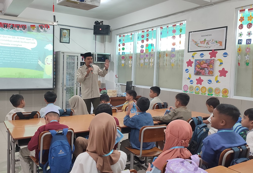 Setelah sesi perkenalan, materi yang sangat fundamental disampaikan kepada para siswa, yaitu adab terhadap orang tua dan guru. Dengan bahasa yang sederhana dan mudah dicerna, guru menekankan pentingnya menghormati, menyayangi, dan berbakti kepada orang tua di rumah, serta patuh dan menghargai guru di sekolah. Materi ini disampaikan melalui cerita dan contoh-contoh nyata yang relevan dengan kehidupan sehari-hari anak-anak, sehingga pesan moralnya dapat tertanam dengan baik. Penekanan pada adab ini menjadi pondasi penting dalam membentuk karakter siswa yang berakhlak mulia.