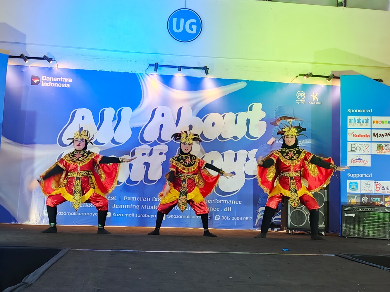 MUDIPAT.CO – Penampilan memukau Tari Pitik Walik dari siswi SD Muhammadiyah 4 Pucang Surabaya (Mudipat) sukses menambah semarak panggung pameran All About Stuff Boy yang berlangsung pada 25 – 27 Juli di Mal Kaza, Surabaya. Suguhan seni tradisional ini menjadi daya tarik tersendiri di tengah suasana pameran yang penuh kreativitas dan talenta muda.
