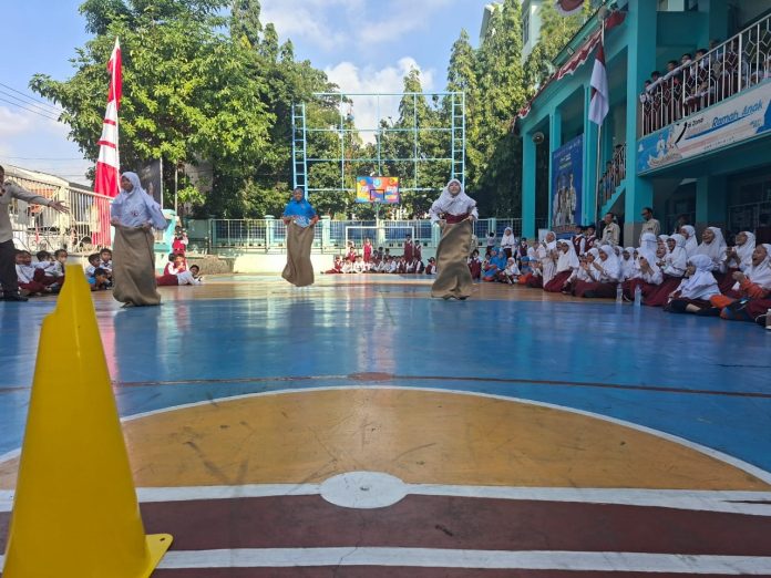 MUDIPAT.CO-Ratusan siswa SD Muhammadiyah 4 (Mudipat) Surabaya tumplek blek di halaman sekolah, Senin (11/8/2025). Mereka ikut ambil bagian dalam lomba-lomba untuk memeriahkan Hari Ulang Tahun (HUT) ke-80 Kemerdekaan Republik Indonesia (RI).