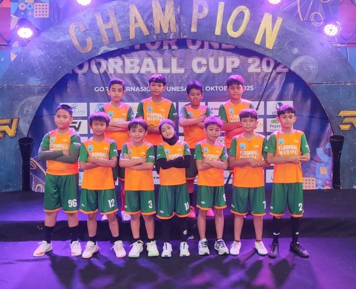 MUDIPAT.CO – Membanggakan! Tim Floorball SD Muhammadiyah 4 Surabaya berhasil meraih Juara 1 dalam kejuaraan Rektor Unesa Cup 2025 cabang olahraga Floorball di GOR Unesa Jumat-Minggu (3-5/10/2025).