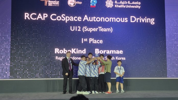 MUDIPAT.CO – Tim Robotika dari SD Muhammadiyah 4 Pucang Surabaya (Mudipat) membawa harum nama Indonesia di kancah dunia. Sebab, Tim Robokind Club dari Mudipat ini meraih prestasi gemilang, tim ini berhasil meraih tiga penghargaan utama pada ajang RoboCup CoSpace Autonomous Driving Asia Pasifik 2025. Event ini berlangsung pada 10–14 November di Abu Dhabi, Uni Emirat Arab.
