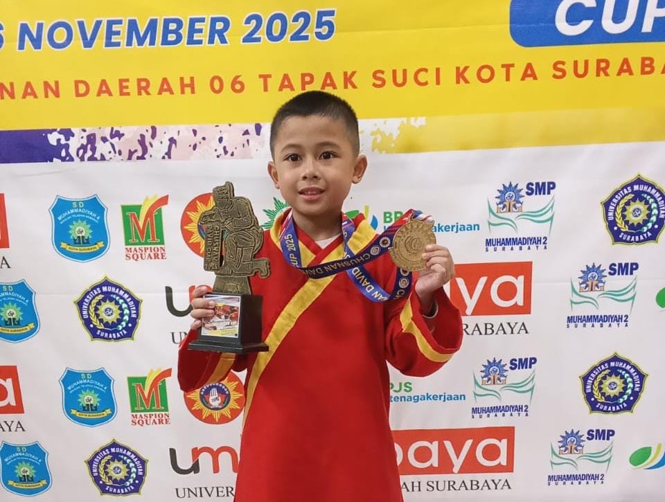 Secara keseluruhan, SD Muhammadiyah 4 Surabaya juga menorehkan hasil membanggakan dengan dinobatkan sebagai Juara Umum I Kategori SD Chusnan David Cup 2025, setelah berhasil mengumpulkan 35 medali emas dan 27 medali perak.
