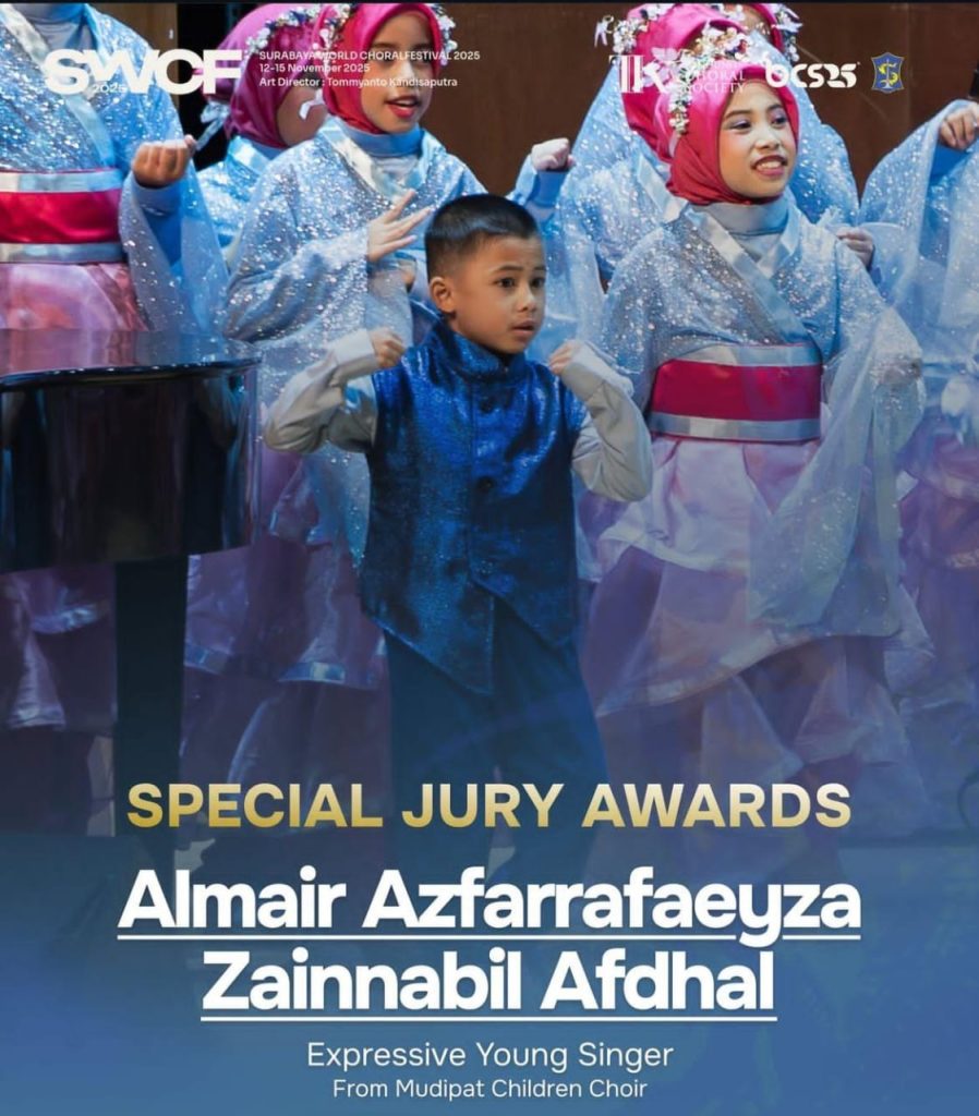 Prestasi ganda Almair menjadi bukti bahwa di Mudipat, potensi siswa terus diasah secara seimbang — baik dalam akademik, seni, maupun olahraga. Dengan dukungan guru dan orang tua, generasi muda seperti Almair siap melangkah menjadi pribadi unggul yang beriman, berakhlak, dan berprestasi. (Anggie/Mul)