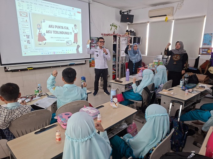 Pria yang juga orang tua dari Shareefa Syahla Malayeka kelas III-I itu menyampaikan materi dengan judul Aku Punya KIA, Aku Terlindungi.