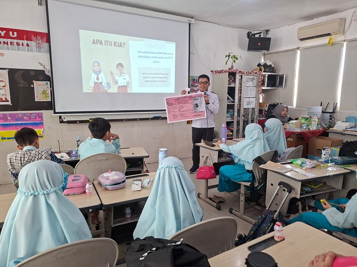 “KTP berwarna biru, KIA warnanya pink, coba kalian cek di rumah atau tanya ke orang tuamu, kamu sudah punya KIA atau belum. Kalau belum, segera diurus,” katanya.