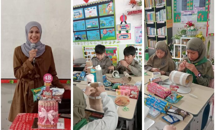 Materi yang disampaikan adalah pembuatan buket dari snack yang dekat dengan kehidupan sehari-hari siswa. Kegiatan guest teacher ini dilaksanakan di ruang kelas IV-B dengan melibatkan seluruh peserta didik kelas IV-B. Suasana kegiatan berlangsung dengan tertib dan antusias. Titik Iftitah selaku wali kelas turut mendampingi jalannya kegiatan untuk memastikan pembelajaran berjalan dengan lancar dan sesuai dengan tujuan yang telah direncanakan.