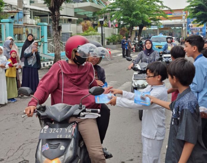 Tidak hanya berorasi, para siswa juga membagikan “Takjil Pre Ramadhan” kepada pengguna jalan dan warga sekitar. Pembagian 1000 pcs kurma dan jadwal Imsyakiyah ini disambut antusias oleh masyarakat. Banyak pengendara motor dan mobil yang menepi sejenak untuk menerima pemberian dari tangan-tangan mungil siswa Mudipat yang tersenyum ramah.